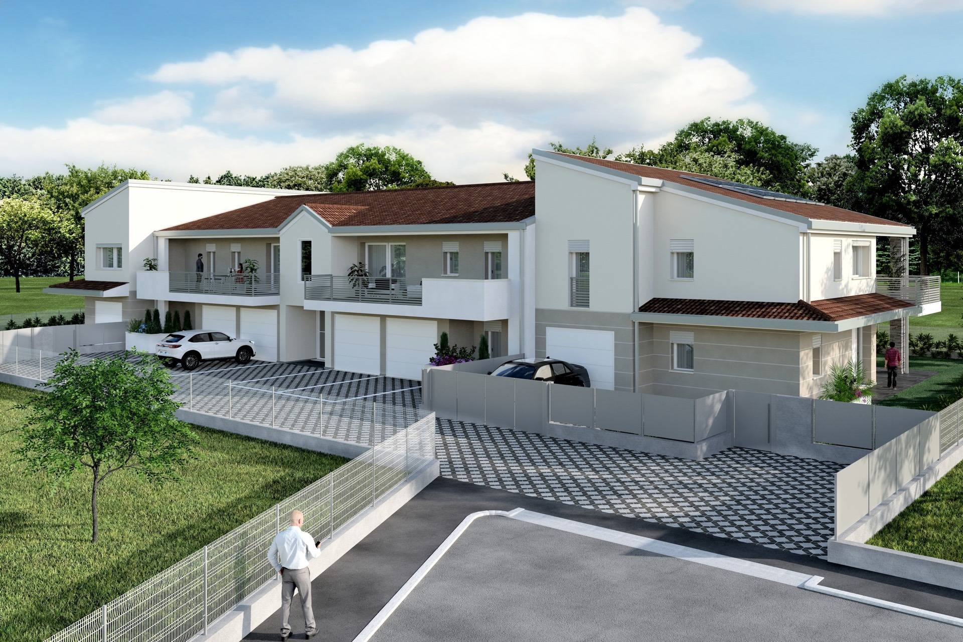 Camisano Vicentino frazione SANTA MARIA all'interno di un nuovo contesto residenziale, con strada chiusa per i soli residenti, ULTIMA VILLETTA BIFAMILIARE libera su tre lati e disposta su due livelli fuori terra, composta da soggiorno con angolo cottura di 55mq, tre camere di cui la matrimoniale con bagno privato, altri due bagni, garage, portico e giardino privato. Completamente indipendente. Attualmente in costruzione con possibilità di personalizzazione. EURO 398.000